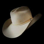 Classic Cattleman in Bone with a double wrap deerskin lace band and bucking horse silver concho.