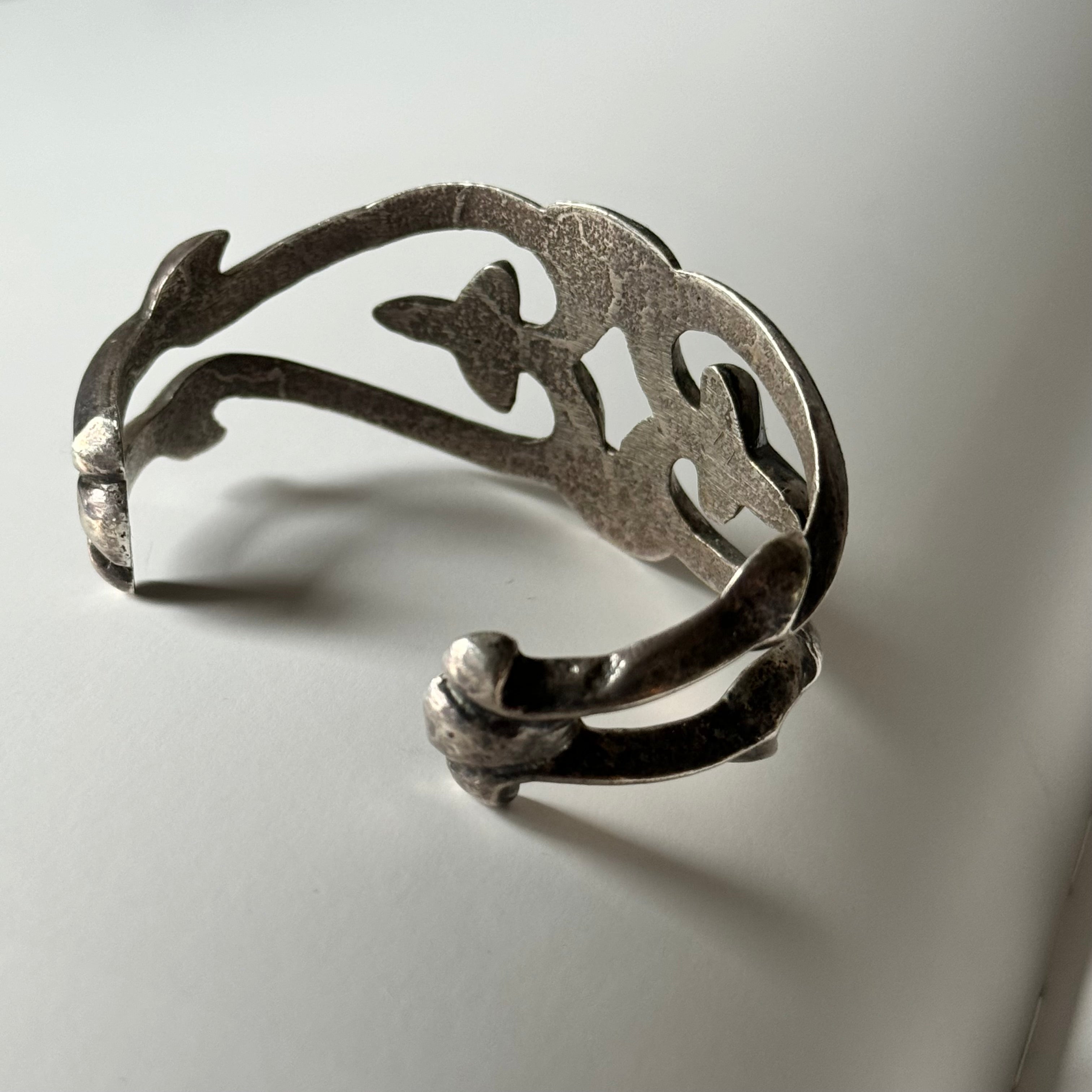 In Navajo tradition, the hand stamping technique requires commitment to time and precision, resulting in beautifully intricate designs in silver. Stamps were historically handmade and often passed down from generation to generation. Most stamps are small and it can require hundreds hammer strikes to complete a finished design. Worn individually or stacked, these delicate hand stamped cuffs are a timeless piece of history.